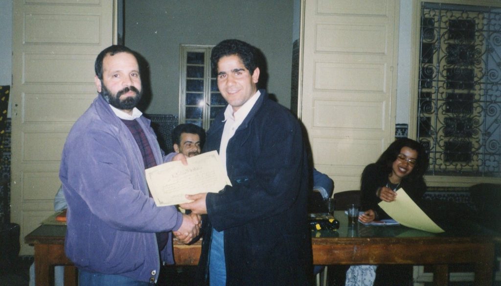 شكّلت سنة 1974 منعطفًا حاسمًا في المسار المسرحي لسعيد أعاصم، إذ انتقل فيها من فضاء العمل التقني، حيث كان يشتغل في الظل على الإضاءة والتمويج الموسيقي، إلى واجهة الخشبة، حيث تتجسد الشخصية ويتحول الصوت والجسد إلى أداة تعبير مباشر. ففي هذه السنة بالذات، أُسنِد إليه دور مهم في مسرحية “العساس”، من تأليف وإخراج الراحل مصطفى يقطين، أحد الأسماء البارزة في المشهد المسرحي آنذاك،) أخ الأديب والناقد المعروف سعيد يقطين)، لم يكن هذا التحول وليد الصدفة، ولا نتيجة ظرف عابر، بل جاء تتويجًا لمسار من الملاحظة الدقيقة والتمرين المستمر، ولموهبة كانت تتكشف تدريجيًا في فضاءات التدريب الجماعي داخل الجمعية، آمن مصطفى يقطين بقدرات سعيد أعاصم التشخيصية بعد أن لاحظه عن قرب في حصص تمارين التشخيص التي كانت تنظمها الجمعية بانتظام لتأطير أعضائها، وتعريفهم بأسس الأداء المسرحي، وقواعد تجسيد الأدوار، وضبط الجسد والصوت والانفعال. هناك، في فضاء التمارين، بعيدًا عن وهج الأضواء وضجيج الجمهور، كان سعيد يكشف عن طاقة داخلية لافتة، وقدرة على التقمص، وحسّ مرهف في التقاط الإيقاع الدرامي، ما جعل المخرج يضع عليه ثقته، ويمنحه فرصة الانتقال من التقنية إلى التشخيص. كان دور “العساس” بمثابة امتحان فني حقيقي، واختبار جريء لموهبة في طور التشكّل، لكنه في الوقت ذاته شكّل فرصة نادرة لاكتشاف الذات من داخل التجربة الحية للعرض المسرحي، ومع أولى خطواته على الخشبة، وجد سعيد أعاصم نفسه في قلب الفعل الدرامي، يتلمّس نبض الجمهور، ويختبر العلاقة المباشرة بين الممثل والمتلقي، تلك العلاقة التي لا تعوّضها أي تقنية مهما بلغت دقتها. لقد انتقل من التحكم في الضوء الذي يضيء الممثلين، إلى أن يكون هو نفسه في دائرة الضوء، ومن ضبط الإيقاع الموسيقي المصاحب للمشهد، إلى الانخراط في الإيقاع الداخلي للشخصية. هذا التحول لم يكن مجرد تغيير في الوظيفة داخل العرض، بل كان تحولًا في الوعي بالمسرح ذاته، من كونه جهازًا تقنيًا تُضبط عناصره من الخلف، إلى فضاء حي للصراع والتعبير والوجود. وهكذا أسست تجربة “العساس” لمرحلة جديدة في مسار سعيد أعاصم، مرحلة سيصبح فيها التشخيص ركيزة أساسية من ركائز اشتغاله المسرحي، إلى جانب وعيه التقني السابق، الذي أضفى على أدائه عمقًا خاصًا وفهمًا شاملًا لبنية العرض. لقد كانت ثقة مصطفى يقطين في موهبته لحظة اعتراف مبكرة، ونقطة انطلاق حقيقية نحو ترسيخ حضوره كممثل، بعد أن كان أحد الجنود المجهولين خلف الكواليس. ومنذ تلك اللحظة، لم يعد المسرح بالنسبة إليه مجرد اشتغال تقني، بل صار فضاء للكينونة والإبداع والمغامرة الوجودية.