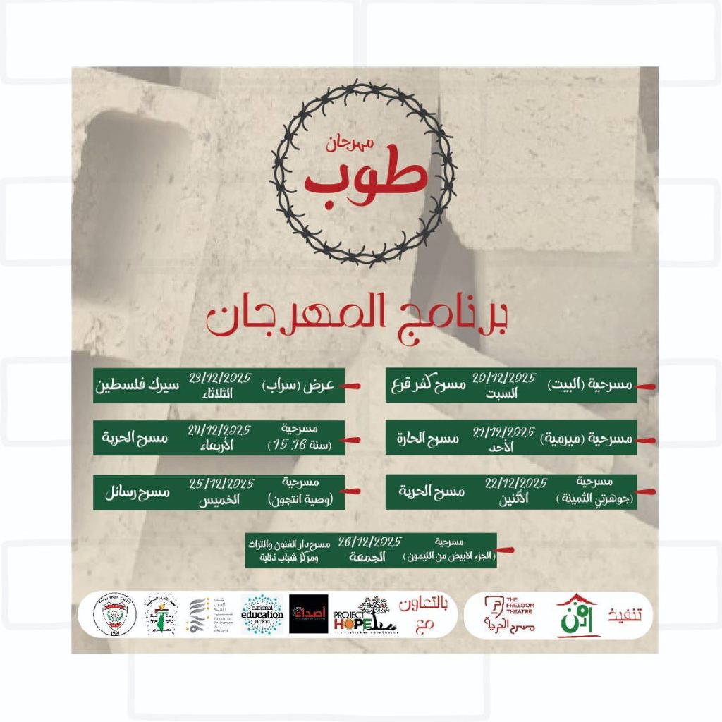 تم اختيار مسرحية “البيت” لتقدم في افتتاح مهرجان المسرح الفلسطيني “طوب” في مدينة نابلس، من 20 إلى 26 ديسمبر/كانون الأول 2025وهي المسرحية الوحيده المشاركة من الداخل الفلسطيني وستشارك بإسم كفرقرع.