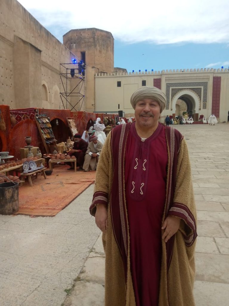 بعد ذلك، انتقل إلى تجربة جديدة مع الفنان الخمار المريني، الملقب بـ “شيخ الشباب”، حيث وجد نفسه يعمل إلى جانب شباب في عمر أبنائه، وهو ما أثار في نفسه شيئًا من التردد والانزعاج في البداية. غير أنه آثر الصبر والاستمرار، مؤمنًا بأن الطريق إلى الفن لا يُعبد بسهولة. انخرط في ورشات تكوينية متعددة، وشارك في تدريبات مكثفة، نال عنها شهادات تقديرية، ساهمت في صقل موهبته وتعزيز ثقته بنفسه.وجاءت الفرصة التي انتظرها، حين شارك في عمل احترافي كبير جمع نخبة من ممثلي مدينة فاس، وكان موضوعه فن الملحون، من تأليف المرحوم محمد العلمي، وإخراج حميد الرضواني، شكل هذا العمل محطة مهمة في مسيرته، إذ أتاح له الاحتكاك بتجارب متنوعة، وفتح أمامه آفاقًا جديدة في فهم المسرح وممارسته.ومع مرور الأيام، بدأت فكرة التأليف المسرحي تتبلور في ذهنه. تساءل مع نفسه، لماذا لا يجرب حظه في الكتابة؟ كان يحمل في داخله رصيدًا من الأفكار والمذكرات والقصص القصيرة التي كتبها في فترات سابقة، فقرر أن يمزج بينها، ويضيف إليها خلاصة تجربته الحياتية الطويلة، لينتج نصًا مسرحيًا من صميم ذاته. وهكذا وُلد نصه الأول بعنوان “أعطيني عقلك”، ولأن الإمكانيات كانت محدودة، بحث عن فضاء يحتضن العمل، فوجد ضالته في أحد الأصدقاء الذي كان يترأس جمعية تتوفر على مقر. كان المقر هو الأهم بالنسبة إليه، لذلك أسند لصديقه مهمة الإخراج، رغم قلة خبرته، بينما تولى هو الإشراف على إنجاز العمل بصفته مؤلفًا. ورغم هذه التحديات، خرج العمل إلى النور في صورة جميلة، ولاقي استحسان الجمهور، وإن لم يُعرض سوى مرتين بسبب ضعف الإمكانيات المادية.