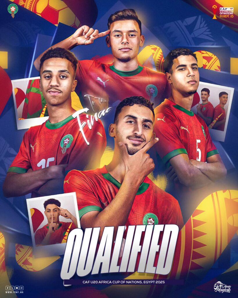 تأهل المنتخب الوطني المغربي لكرة القدم تحت 20 سنة إلى المباراة النهائية لبطولة كأس الأمم الإفريقية (مصر 2025)، بعد تغلبه على نظيره المصري بهدف نظيف سجله اللاعب يونس عبد اللاوي في الدقيقة 78 من عمر المباراة التي جرت اليوم على ملعب القاهرة الدولي.