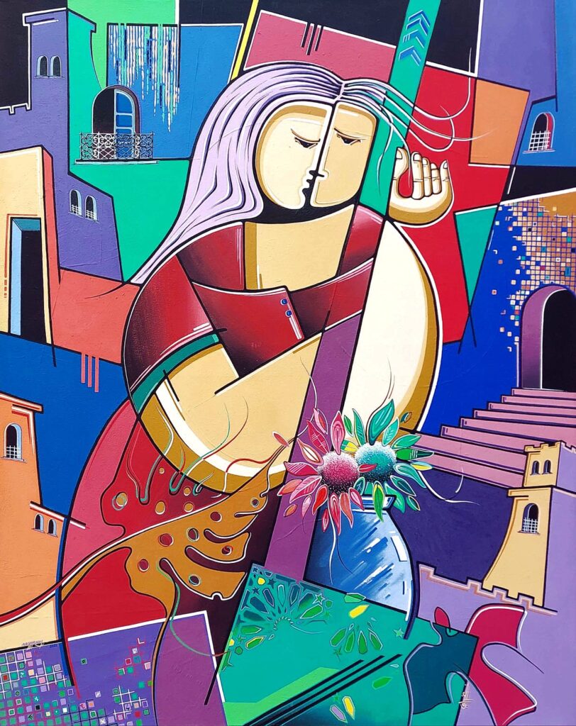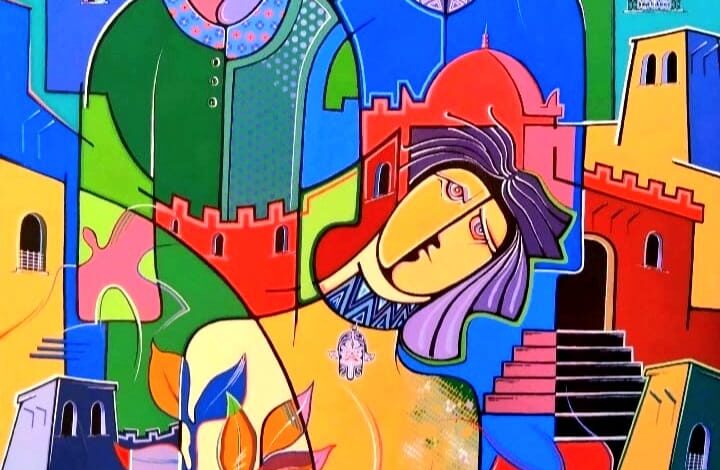 يُعد التشكيل في تجربة نغراوي بوعبيد بنية معرفية أكثر منه تمرينًا بصريًا، فهو يعتمد على تفكيك الأشكال وإعادة تركيبها هندسيًا وفق رؤيةٍ تكعيبيةٍ تعبيريةٍ تمزج بين التحليل العقلي والتفاعل العاطفي، يستند هذا الأسلوب إلى قناعةٍ بأن الشكل لا يُعبّر عن الواقع كما هو، بل كما يُعاد بناؤه في الذاكرة والوجدان. فالتكوين عنده يقوم على تحويل التجربة الشعورية إلى بناء بصري، حيث تتداخل الخطوط والزوايا لتوليد معنى جديد، إنه يستخدم الهندسة لا لتقييد الشكل، بل لتحرير المعنى، فالتفكيك عنده ليس تفكيكًا للعالم، بل إعادة لتركيبه وفق منطق الروح، وهذا ما يمنح لوحاته طابعًا ديناميًا، إذ تبدو الأشكال في حركةٍ دائمةٍ، كما لو كانت تتحول باستمرار بين الحلم والواقع، من هنا، يمكن النظر إلى فنه ضمن ما يُعرف في النقد الجمالي المعاصر بـ “الحداثة المتمسّكة بالأصل“، أي الحداثة التي لا تنكر جذورها الثقافية بل تعيد تأويلها بصريًا. وبذلك تتحقق في تجربته وحدة الشكل والمعنى، حيث لا يمكن فصل الخط عن الفكرة، أو اللون عن الإحساس، يرى نغراوي بوعبيد أن الفن موقف إنساني وثقافي، لا يكتفي بتصوير الجمال بل يسعى إلى ترميم العلاقة بين الإنسان وذاته في زمن التشيؤ والتفكك، فالفن عنده شكل من أشكال المقاومة الهادئة، مقاومةٍ للسطحية وللنسيان ولاغتراب الإنسان عن مكانه، حيث يمكن النظر إلى تجربته كجسرٍ بين الفن والفكر، بين الصورة والوعي، فكل لوحة عنده هي فعل تأملٍ، وصلاةٌ لونية تفتح للمتلقي باب المشاركة في بناء المعنى، وهذا ما يمنح فنه بعدًا أخلاقيًا وإنسانيًا يتجاوز حدود الجماليات التقنية، وبهذا يصبح الفن في نظره ذاكرة الأمة وبوصلتها الروحية، وسيلة لاستعادة الحسّ الجمالي في مواجهة القبح المادي الذي يهيمن على العالم المعاصر. وبهذا يتحول الفنان إلى حارسٍ للمعنى، وإلى صوتٍ للروح في عالمٍ يضجّ بالضجيج ولا يُصغي.