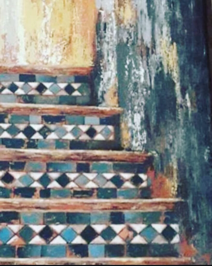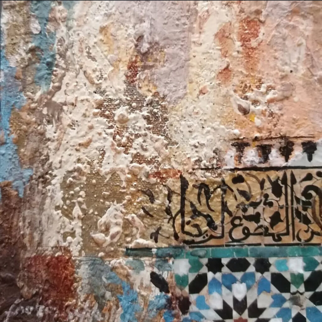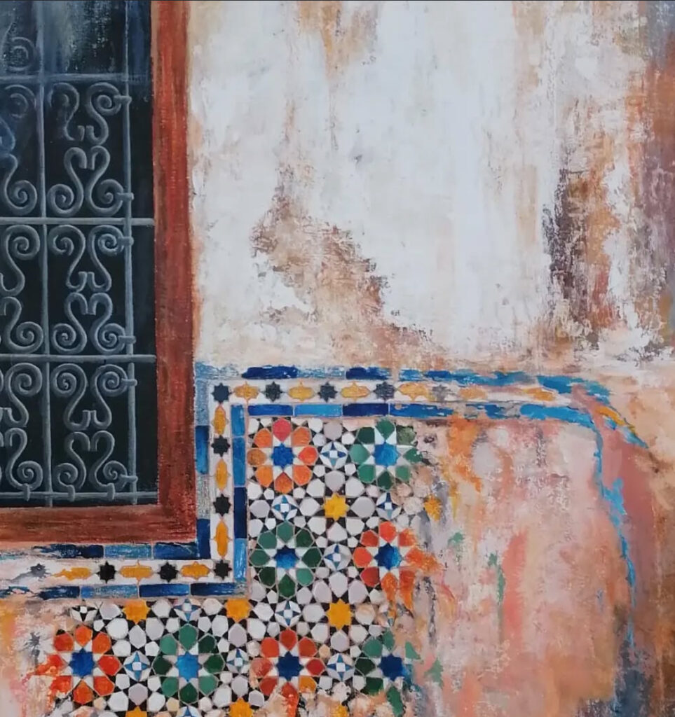 بوصفها فنانة منحدرة من مدينة فاس، كان لا بد أن يتأثر نتاجها التشكيلي بالمحيط العمراني الغني الذي تزخر به المدينة القديمة، لقد كانت المناظر الإجمالية للأحياء والأزقة والدروب الفاسية أولى مواضيعها، إذ حاولت أن تترجم عبرها الإحساس بخصوصية المكان وحرارته الإنسانية، غير أن التحول الجوهري في تجربتها جاء حين انجذبت إلى عالم الزليج المغربي، الذي اكتشفت فيه مصدرًا لا ينضب للإلهام البصري والرمزي، حيث أنجزت بحثًا أكاديميًا حول الزليج أثناء تكوينها في الدراسات العليا، وتعرفت عن قرب على مراحل صناعته ودلالاته التشكيلية، وهو ما انعكس على لوحاتها لاحقًا، صار الزليج عندها أكثر من مجرد عنصر زخرفي؛ إنه مجاز بصري للهوية المغربية، وللذاكرة الجماعية التي تختزنها أمكنة فاس القديمة، تظهر في أعمالها السقايات والمدارج والأعمدة والجدران، وكلها عناصر تستحضر المكان وتمنحه حياة جديدة من خلال رؤية فنية متجددة، تقترب فوزية السقاط من اللوحة كما يقترب النحات من مادته، لا تكتفي بالسطح وإنما تحفر بإزميل الوعي في عمق اللون والمادة، تنظر إلى الزليج ليس كموضوع جاهز، بل ككائن حيّ يحمل ذاكرة الجماعة، فتسائل تشكيلاته وألوانه وتنوعاته، إنها لا ترسمه لتوثيقه، بل لتعيد قراءته في ضوء الحس المعاصر، وهكذا تتحول لوحتها إلى مجال للتأمل في العلاقة بين التراث والحداثة، بين الثابت والمتحول، بين المادي والروحي، لقد ارتبط اسم الفنانة فوزية السقاط برسمها الدقيق للزليج المغربي، حيث تتداخل القطع في بناء بصري متوازن يخلق مسافات من الأمل والتجذر في الهوية والمكان، غير أن المرحلة اللاحقة من تجربتها تميزت باقترابها من التفاصيل الدقيقة والتراكيب الهندسية، مبرزةً تناغمها الإيقاعي ضمن فضاء اللوحة.