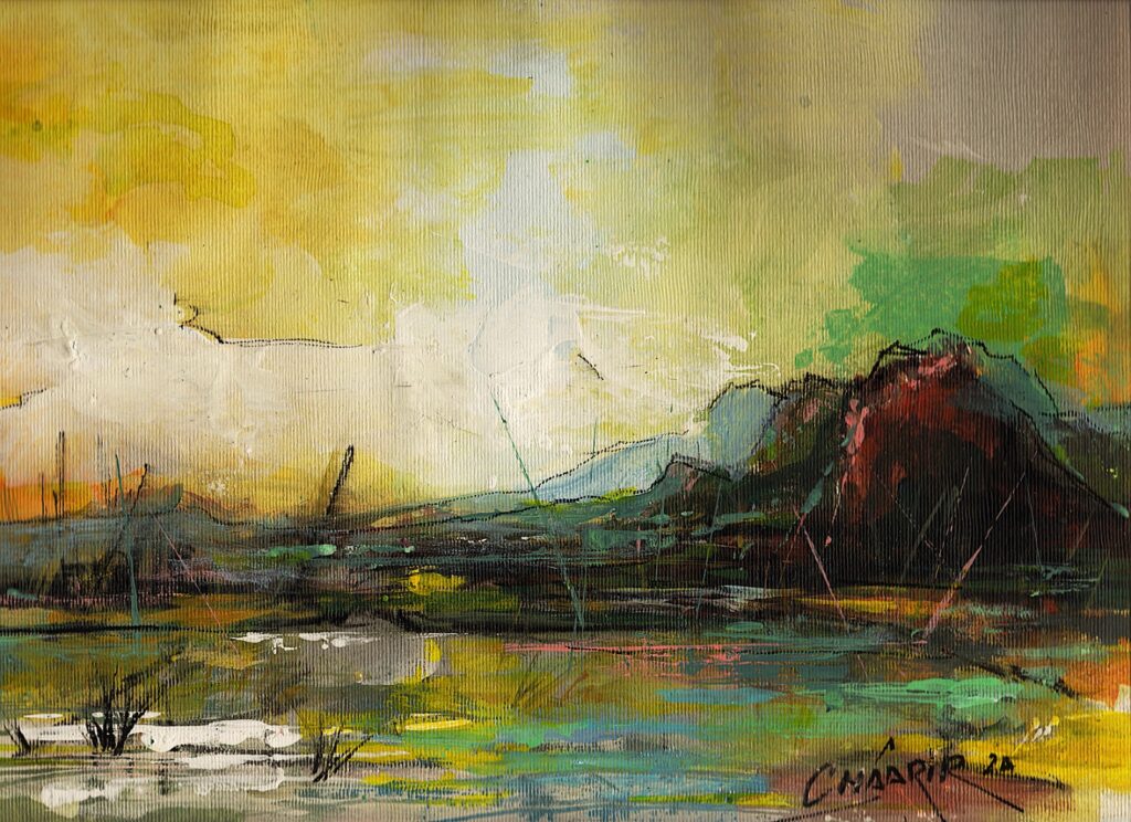في تجربة عام 2022 انفتح رشيد شعرير على أفقٍ فلسفيٍّ أعمق من أي مرحلة سابقة، أفقٍ جعل من خط الأفق محورًا رمزيًا يعبر عن علاقة الفنان بالعالم والوجود، لم يعد الأفق في أعماله مجرّد عنصر بصري يوازن بين السماء والأرض أو يحدد البعد المنظوري للمشهد، بل تحوّل إلى مجازٍ وجوديٍّ متعدّد الطبقات، يختزن في امتداده الطويل معنى التوازن بين الثبات والتحوّل، بين التأمل والانفعال، بين الصمت والحركة. لقد صار الأفق عنده مقياسًا داخليًا يزن به المسافة بين الذات والعالم، وبين الحلم والواقع، فيتحول من خطٍّ هندسي إلى فكرة فلسفية تشكّل روح اللوحة وسرّ تكوينها، لقد سعى شعرير في هذه التجربة إلى أن يجعل من اللوحة فضاءً للتأمل الوجودي أكثر من كونها مجالًا للتعبير التشكيلي فحسب. كل خطٍّ أفقي يرسمه كان بمثابة رحلة بصرية نحو الداخل، استبطانٌ للذات وهي تتأمل وجودها في مرآة اللون والفراغ. إن هذا الأفق، في تموّجاته الصامتة، لا يحدّد المشهد بقدر ما يفتحه على احتمالاتٍ لا نهائية؛ فهو الحدّ الذي يفصل بين العالمين ويصل بينهما في آن، بين الداخل والخارج، المرئي والمجرّد، الحضور والغياب. إنه حدٌّ يحافظ على النظام، لكنه في الوقت نفسه يتيح الانفلات منه، كما لو أن الفنان يوازن بين الحاجة إلى الاستقرار والرغبة في الحرية، بين الحضور المادي والامتداد الروحي، ومن خلال هذا الاشتغال الدقيق على الخط الأفقي، استطاع شعرير أن يخلق لغة بصرية هادئة وعميقة، تستدعي المشاهد إلى تأملٍ صامت، إلى لحظة انخطافٍ يتجاوز فيها الشكلُ وظيفته الجمالية ليصبح أداة للتفكير في الوجود. فالمساحات اللونية الواسعة، والطبقات الشفافة، والإيقاعات الخافتة للألوان الترابية، كلها عناصر تساهم في بناء مزاج تأملي يذكّر بلوحات التجريد الروحي عند كبار الحداثيين، لكنها عند شعرير مشبعة بنفَسٍ مغربيٍّ أصيل يستمد رموزه من الأرض والضوء والمادة، لقد أفضت هذه التجربة إلى تحوّل جوهري في فلسفة الفنان، حيث لم يعد الفن عنده مجرّد متعة بصرية أو ممارسة تقنية، بل تجربة وجودية تسائل معنى الكينونة ذاتها، فالرسم بالإضافة إلى أنه رؤيته الجديدة، اصبح إنتاجًا لشكلٍ جميل، وتعبيرا عن رحلةٍ داخل الذات، عن محاولةٍ لإدراك العلاقة بين الإنسان والزمان والمكان، وهكذا تحوّل خط الأفق إلى حدٍّ رمزيٍّ بين الفن والفكر، بين الحس والمعنى، وصارت اللوحة عنده مرآةً للروح وهي تبحث عن توازنها بين الصعود والنزول، بين الانخطاف في الجمال والرسوخ في الأرض، بهذا المعنى، تكشف تجربة الأفق في أعمال رشيد شعرير عن نضجٍ فلسفيٍّ وجماليٍّ رفيع، وعن وعيٍ بأن الفن الحقيقي لا يقف عند حدود الإبهار البصري، بل يتجاوزها ليصبح تأمّلًا في الوجود نفسه، وفي ما يربط الإنسان بسرّ العالم وامتداده في الزمن.