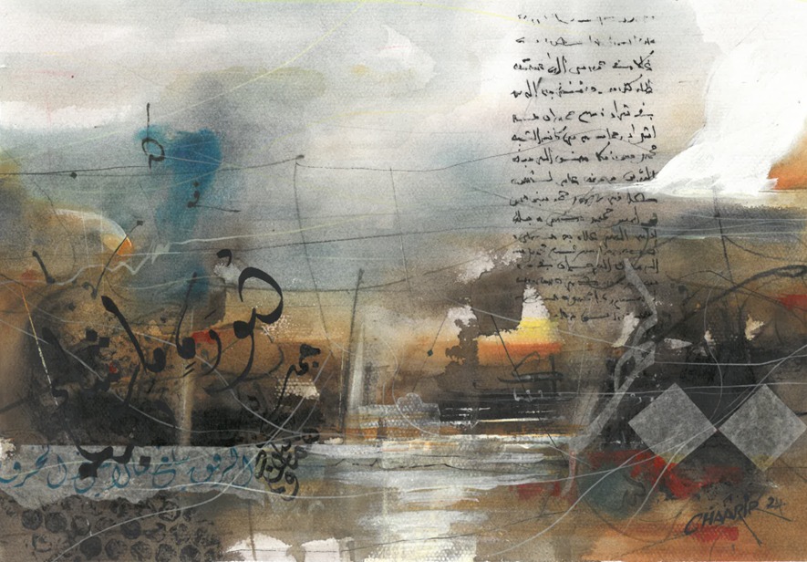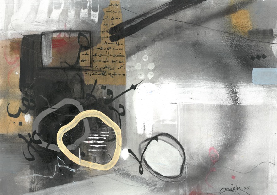 شكّلت مرحلة التفرغ الأكاديمي عام 2020 نقطة تحوّل جوهرية في المسار الفني والفكري للفنان رشيد شعرير، إذ مثّلت لحظة نضجٍ وتأملٍ وإعادة بناء للرؤية التشكيلية التي ظلّ يبحث عنها منذ بداياته، فبعد سنواتٍ من التجريب في مجالات متعدّدة مثل السينوغرافيا والبورتريه والكاريكاتير، أدرك أن تعدّد الممارسات قد أغنى تجربته تقنيًا، لكنه في الوقت نفسه شتّت بوصلة رؤيته الجمالية، ومع هذا التفرغ، بدأ شعرير عملية تصالحٍ داخلي بين مكوّنات شخصيته الفنية، ليُعيد تركيبها في مشروع موحَّد يجمع بين التجريد الحروفي والتعبير اللوني في صيغةٍ متماسكة تعكس عمق نضجه المعرفي والوجداني، في هذه المرحلة، لم يعد اللون عنده من مجرد سطحٍ زخرفيٍّ يُستعمل لتزيين الشكل أو لملء الفراغ، إلى فضاء وجدانيٍّ وروحيٍّ يُترجم انفعالاته وتأملاته، صار اللون لغة مستقلة بذاتها، تمتلك نحوها وصرفها، وتعبّر عن المشاعر عبر تدرجات الشفافية والاختزال، لا عبر الكثافة والتكديس. ولتحقيق هذا الأفق التعبيري، اشتغل شعرير على تقنية الطبقات اللونية المتراكبة، بحيث تتحاور الألوان فوق سطح اللوحة كما تتحاور النبرات في مقطوعة موسيقية، فتتولد من تفاعلها نغمة بصرية تجمع بين الهدوء والعمق، كما لجأ إلى استعمال تقنية الكولاج بوصفها وسيلة لإغناء المادة التشكيلية وإضفاء بعدٍ ملموسٍ على اللوحة، فكان يدمج بين قصاصات المخطوطات القديمة وأمشاق الخط العربي، ليخلق بذلك تداخلًا بين ما هو بصري وما هو رمزي، وبين الذاكرة والحاضر، هذه التقنية جعلت اللوحة عنده أشبه بموقعٍ أثريٍّ للبحث الجمالي، حيث تتجاور بقايا النصوص مع آثار اللون، ويتقاطع المرئي مع المخفي في علاقةٍ تنبض بالتوتر الجمالي. وبذلك، تتحول المادة إلى ذاكرة متجسدة، والحرف إلى أثرٍ بصريٍّ حيٍّ يتجاوز كونه شكلًا لغويًا إلى كونه نَفَسًا تشكيليًا ينبض بالحياة، لقد تبلور من خلال هذه الممارسة أسلوب شخصي ناضج يقوم على الحوار الخلاق بين الأصالة والابتكار، فالحرف في أعماله لم يعد نصًا يُقرأ، بل طاقة حية تتنفس داخل الفضاء اللوني، واللون بدوره لم يعد مجرد خلفية للحرف، بل عنصرًا رمزيًا ومجازيًا يحمل في تدرجاته أثر الروح وحركة الزمن. وهكذا، أصبحت اللوحة فضاءً للتفاعل بين الضوء والظل، الملموس واللامرئي، المادة والفكرة، وكأن الفنان يسعى من خلالها إلى الوصول إلى نوعٍ من التوازن بين النظام والانفلات، بين انضباط الخط وانسياب اللون، إنّ تجربة رشيد شعرير بعد عام 2020 لا يمكن فهمها إلا بوصفها مغامرة في البحث عن الوحدة داخل التعدد، وعن الجمال داخل النظام، وعن المعنى داخل التجريد. إنها مرحلة اكتمال الرؤية، حيث تماهى الحرف مع اللون، والفكر مع الإحساس، ليولد من هذا التفاعل عالم بصري فريد، يجعل من كل لوحة تجربة تأملية، ومن كل لون صلاة صامتة تُترجم حوار الفنان مع ذاته والعالم.