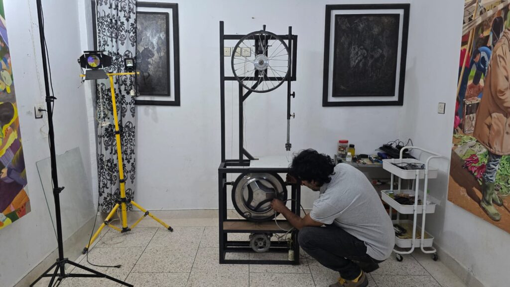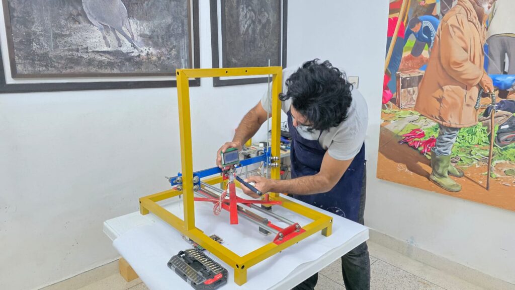 وبالتوازي مع مساره التشكيلي، اتّسعت تجربة وسام يوسفي لتشمل مجالاتٍ تقنية وإبداعية تعكس شغفه بالابتكار وبالرغبة في اكتشاف الصلات العميقة بين الفن والعلم، فهو يحصر الإبداع في فضاء اللوحة أو في حدود المرسم فقط، ولكنه يبحث له عن سند خارجي ويعتبره ممارسة حياتية شاملة تمتد إلى تفاصيل اليومي، إلى كل ما يمكن تحويله إلى معنى وجمال، هذه النظرة الشمولية جعلته يقترب من التكنولوجيا والأدوات التقنية بروح الفنان الذي لا يكتفي بالاستخدام، بل يسعى إلى الفهم وإعادة التشكيل، فبالنسبة إليه، لا تعارض بين الجمال والدقّة، بين الحسّ الفني والعقل العملي؛ فكلاهما وجهان لعملة واحدة اسمها الخلق الإنساني، في هذا الأساس من أبرز مشاريعه التي تجسد هذا التوجه تصميم آلةٍ للرسم قادرة على تنفيذ حركات دقيقة عبر نظام ميكانيكي صمّمه بنفسه، كانت هذه التجربة بالنسبة إليه أكثر من مجرّد تمرينٍ تقني، إذ مثّلت محاولةً جريئة للتأمل في العلاقة المعقدة بين اليد والآلة، وبين الجسد والتقنية، وبين الإبداع الطبيعي والإبداع الاصطناعي، فالآلة، في تصوره، ليست نقيضًا للإنسان، بل امتدادٌ لطاقته وقدرته على التنظيم والإنتاج، حين ترسم الآلة، فإنها لا تلغي حضور الفنان، بل تكشف عن وعيه العميق بالميكانيزمات التي تحكم الحركة والإيقاع، وعن فهمه للخلق الفني باعتباره فعلًا مشتركًا بين الفكر والطبيعة والمادة، ولم يقف وسام عند هذا الحدّ، إذ قام بتحويل آلة غسيلٍ(غسالة) قديمة إلى منشارٍ كهربائي استعمله في أعمال النحت على الخشب، في تجربةٍ تجمع بين الحيلة التقنية والخيال الإبداعي، هذا التحويل لم يكن مجرد عمليةٍ هندسية، بل فعلًا رمزيًا يعيد تعريف وظيفة الأشياء، فكل أداةٍ مهملة أو منتهية الصلاحية، في نظره، تحمل إمكانية ولادة جديدة حين تُعاد قراءتها بعين الفنان، كذلك طوّر طابعةً ثلاثية الأبعاد مستخدمًا موادَّ معاد تدويرها، مستفيدًا من مبادئ الفيزياء البسيطة والإلكترونيات المنزلية، ليخلق أداةً قادرة على تحويل الفكرة إلى شكلٍ مادي نابضٍ بالحياة، هذه المبادرات التقنية لا تعبّر فقط عن مهارةٍ عمليةٍ عالية، ولكنها تكشف عن رؤية فلسفية متكاملة ترى في الإبداع فعلَ وعيٍ بالوجود، وفي الأشياء المادية كائناتٍ لها ذاكرةٌ وقيمة، إن منح الأشياء “حياةً ثانية” عبر إعادة التدوير هو، في جوهره، فعلُ حبٍّ للطبيعة واحترامٌ للزمن، فالفنان ووسام يوسفي يعيد التفكير في علاقته بالمادة والاستهلاك، ويقترح نمطًا جديدًا من الوعي البيئي والجمالي يقوم على الاقتصاد في الموارد وعلى إعادة الاعتبار لما يُعدّ هامشيًا أو منسيًّا، ليتحوّل الإبداع عند وسام إلى موقفٍ أخلاقي بقدر ما هو تجربة جمالية، وإلى شكلٍ من أشكال المقاومة الصامتة ضدّ ثقافة التبذير والاستهلاك السريع التي تهيمن على العصر، كما تكتسب هذه التجارب بعدًا تربويًا واضحًا، إذ تسعى إلى إلهام الأجيال الجديدة وتشجيعها على التفكير الخلاق، وعلى اكتشاف طاقات الابتكار الكامنة في الأشياء البسيطة، فمن خلال أعماله ومشاريعه، يقدّم وسام نموذجًا للفنان المعلّم، الذي يرى في الفن وسيلة للتعلّم المستمر، وفي التقنية مجالًا لتوسيع الخيال لا لتقييده، إن تحويل الأدوات البسيطة إلى وسائل خلقٍ فني يعبّر عن روح الاكتشاف والاعتماد على الذات، ويؤكد أن الإبداع لا يحتاج دائمًا إلى إمكانات ضخمة، بل إلى نظرة جديدة وقدرة على تحويل العادي إلى استثنائي، بهذا المعنى، يجسّد وسام يوسفي صورة الفنان الباحث، الذي يجمع في شخصه بين الحرفي والمفكّر، بين المهندس والمبدع، بين اليد التي تُنجز والعقل الذي يتأمل، إن تجربته تكشف عن وعيٍ عميق بأن الفن والعلم ليسا مجالين منفصلين، بل طريقين متوازيين نحو فهم العالم وإعادة صياغته. وفي هذا التداخل بين الحسّ الجمالي والفكر التطبيقي، تبرز شخصيته كفنانٍ يؤمن بأن الإبداع الحقيقي هو القدرة على تجاوز الحدود، وتحويل شيء لا قيمة له إلى شيء يستطيع خدمة الإنسان، وعلى ربط ما هو ما